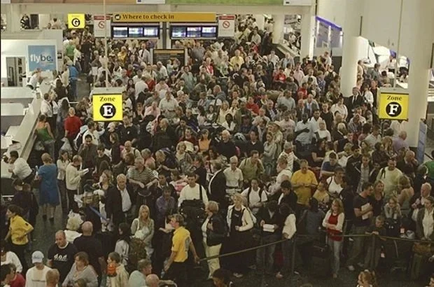 Everyone in the airport security line waited in suspense.